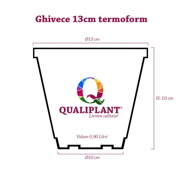 Ghivece Qualiplant, diametru 13cm, destinate producției de legume, flori sau alte plante.