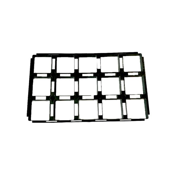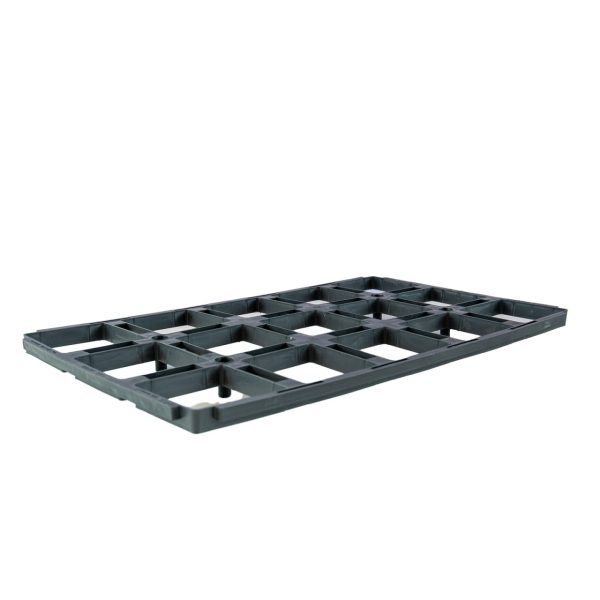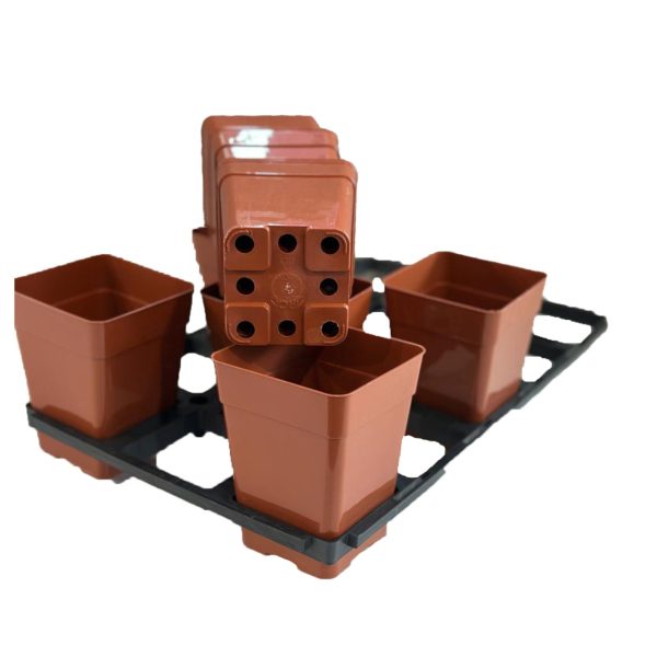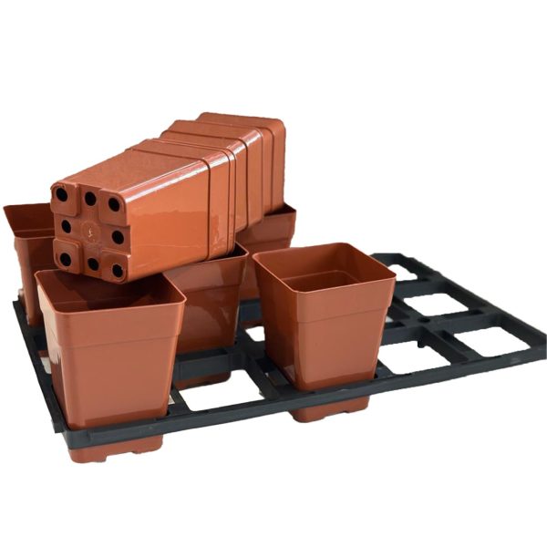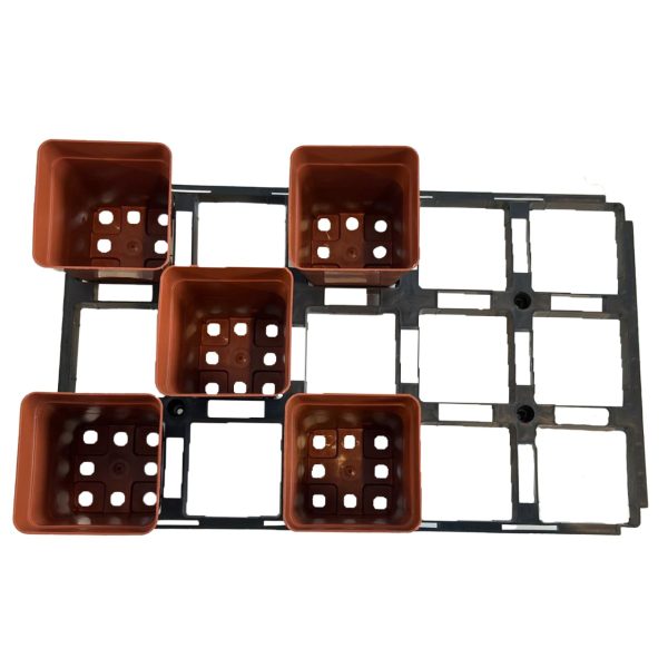 Suport din material plastic dur care ajută la fixare și la transport pentru ghivecele pătrate Qualiplant 11cm x 11cm x 14cm (L x l x h), destinate producției de legume, flori sau alte plante dar în special destinate bulboaselor, trandafirilor sau plantelor perene.
